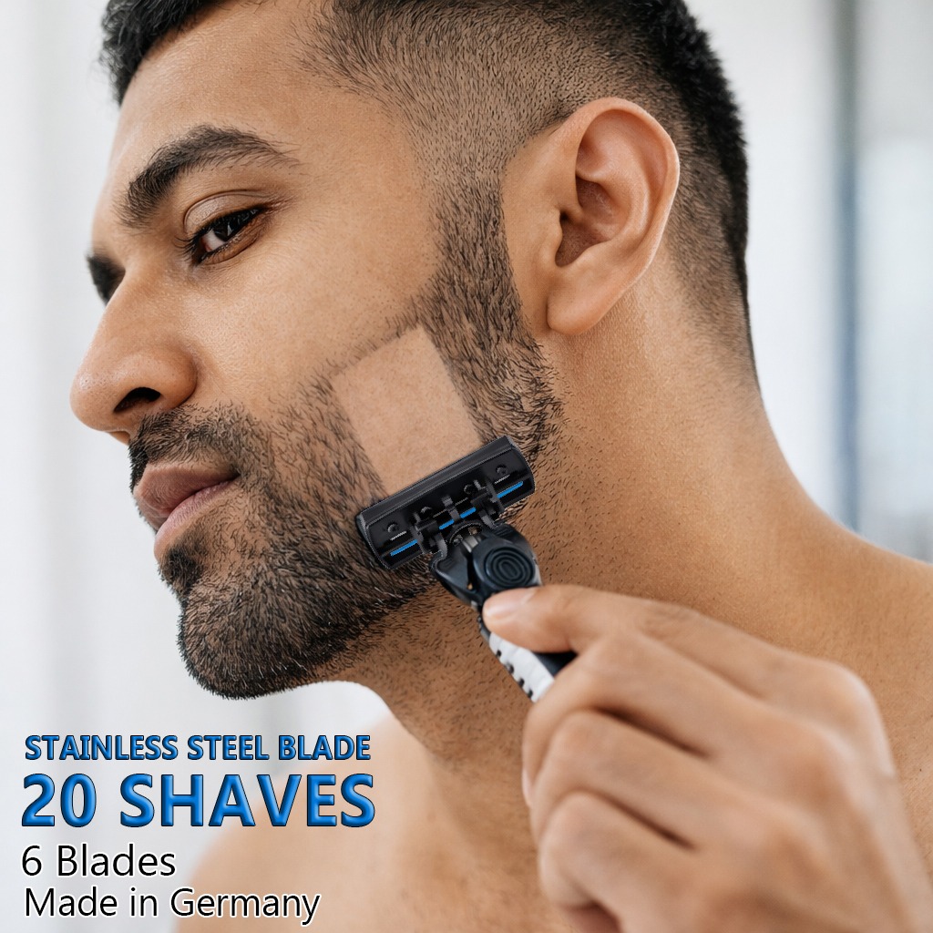 Designed with 6 ultra-sharp stainless steel blades, this razor delivers an exceptionally close and smooth shave while minimizing irritation, cuts, and razor burns. Its advanced blade technology ensures up to 20 smooth shaves from a single razor, making it both high-performing and economical.